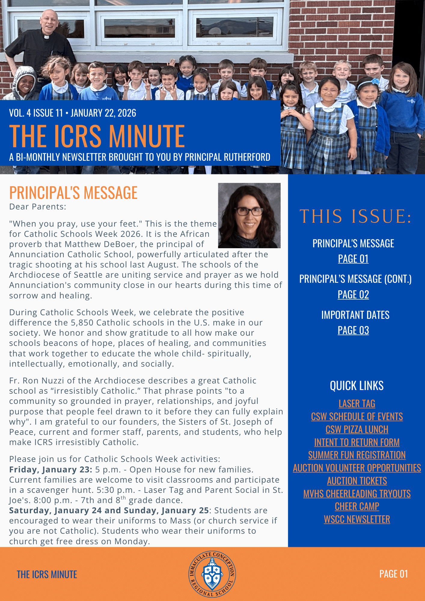 A message from Father Tom, project-based learning update and Jog-a-thon